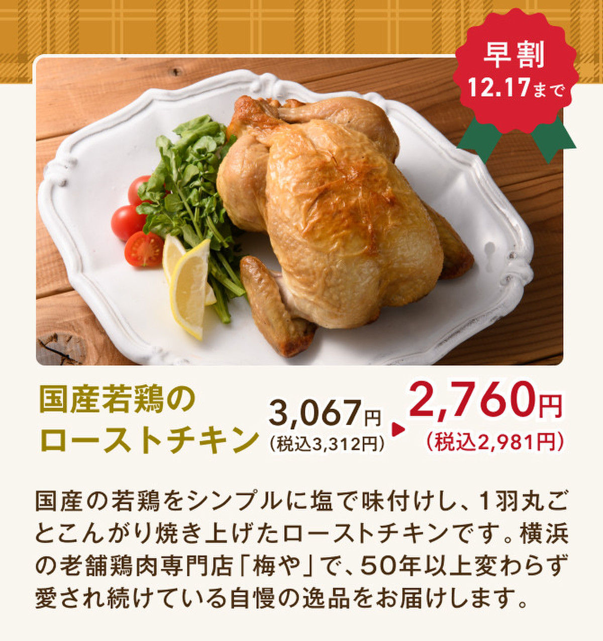 今年もクリスマスチキンの早割がスタート❗12/17までの予約注文限定で、クリスマスチキンを特別価格でお届けします🎉