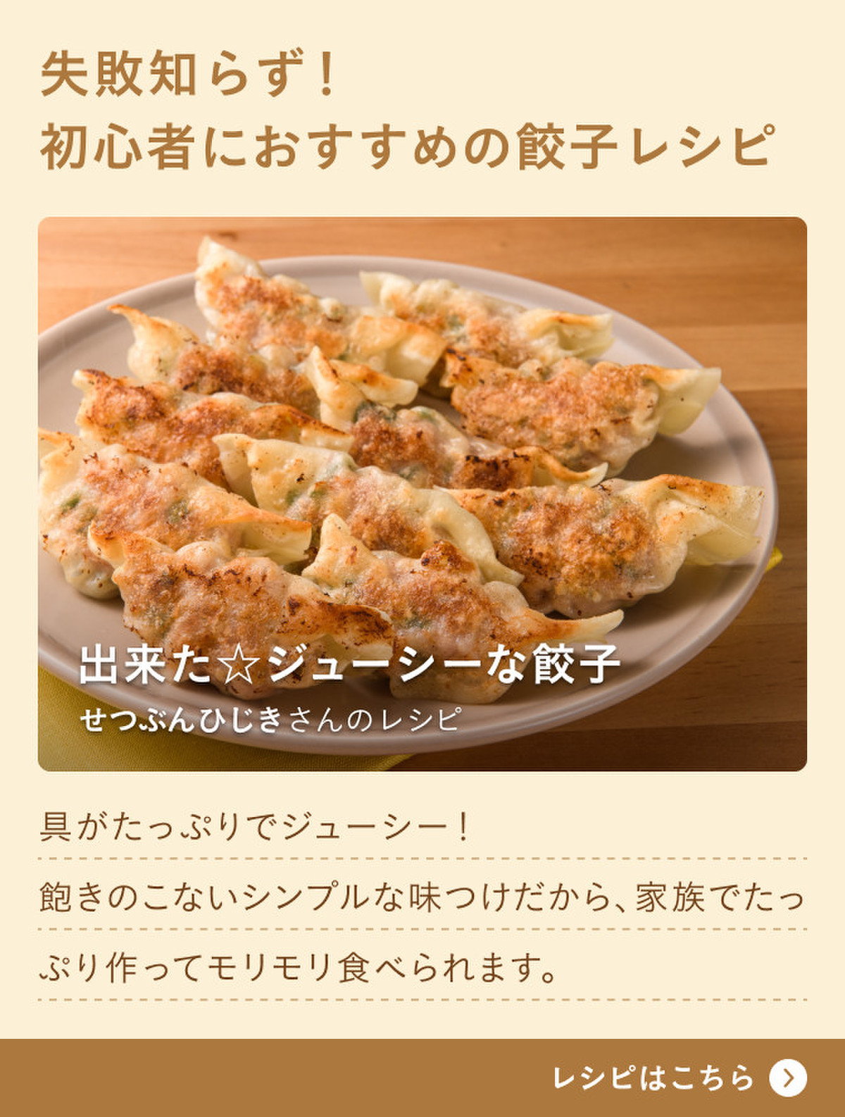 手作り餃子って大変&難しそうと思っていませんか?専門店の材料を使えば、意外と簡単に家でもお店のような餃子が楽しめます。家族でワイワイ盛り上がりながら、おいしい餃子を作ってみましょう!