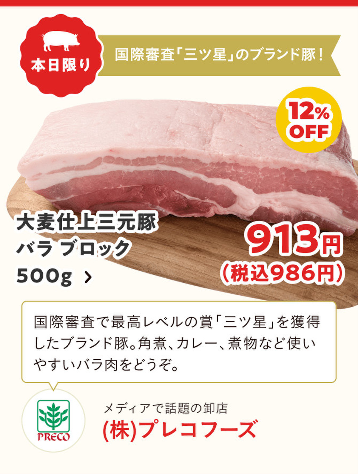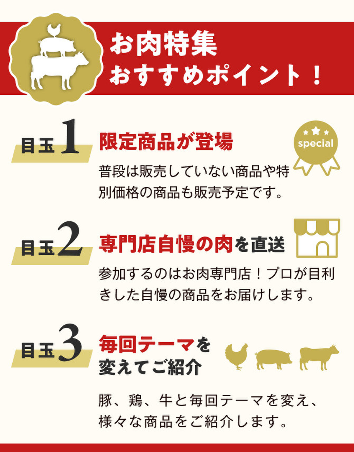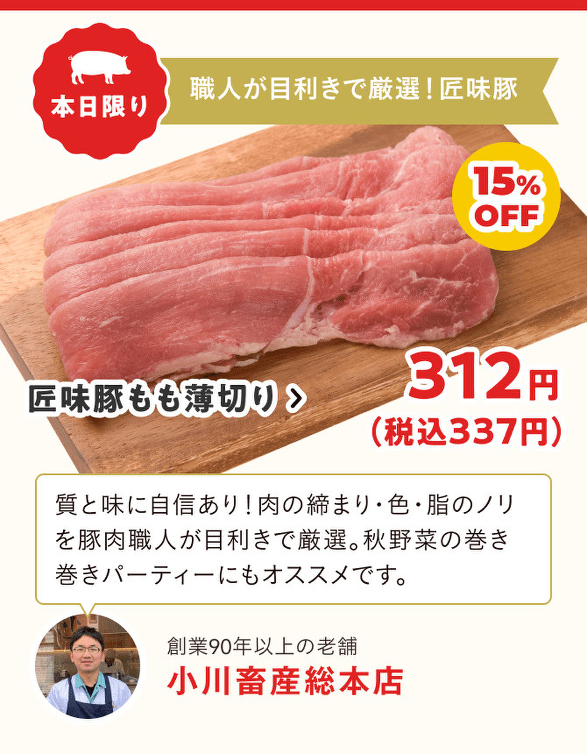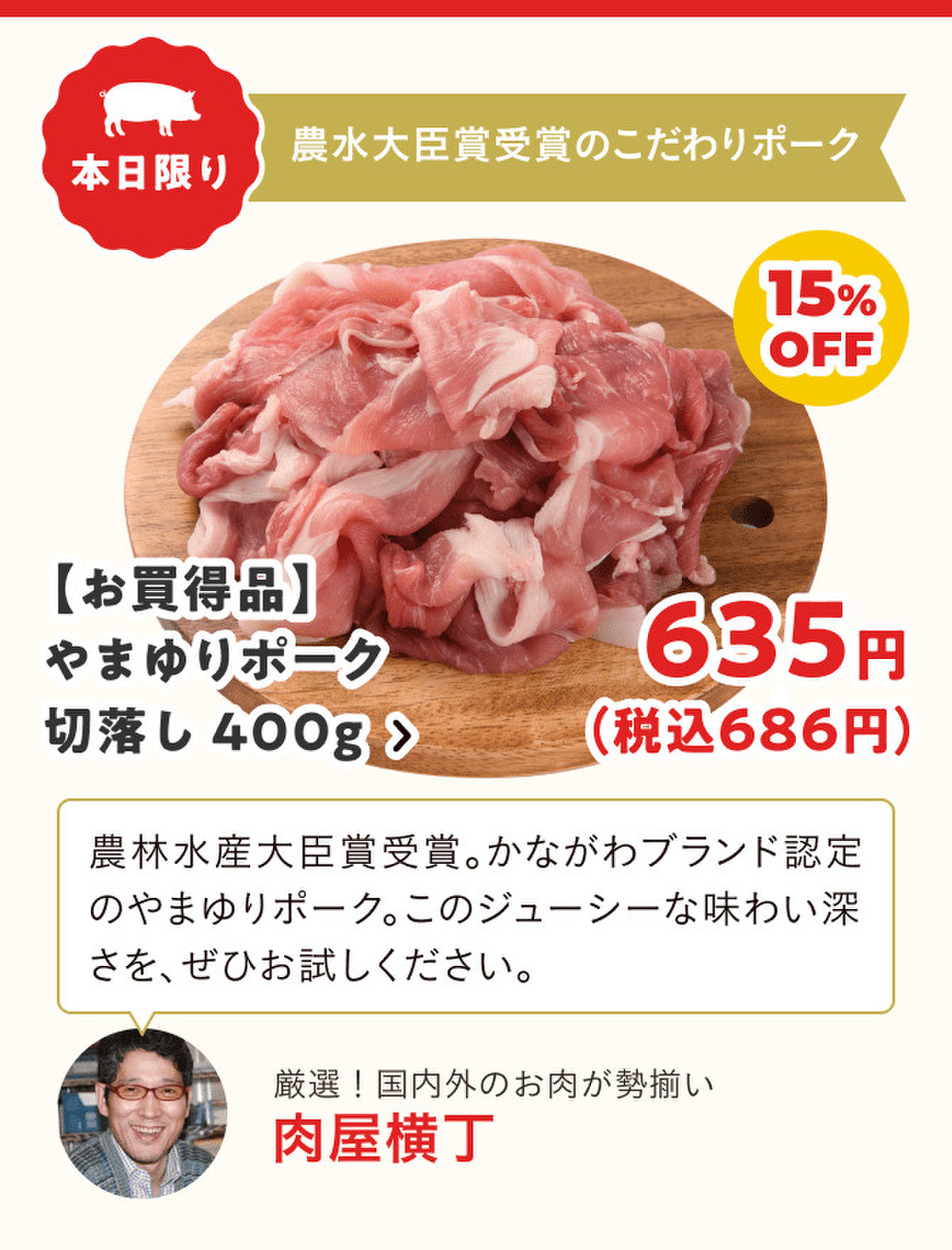 毎月29日=肉の日に合わせて、お値打ち価格のお肉を販売!今回は「豚肉」をテーマに6つの精肉専門店が参加し、各店舗のいちおし商品を数量限定&特別価格でお届けします。お店のおすすめコメントも参考に、お得なこの機会をお見逃しなく♪