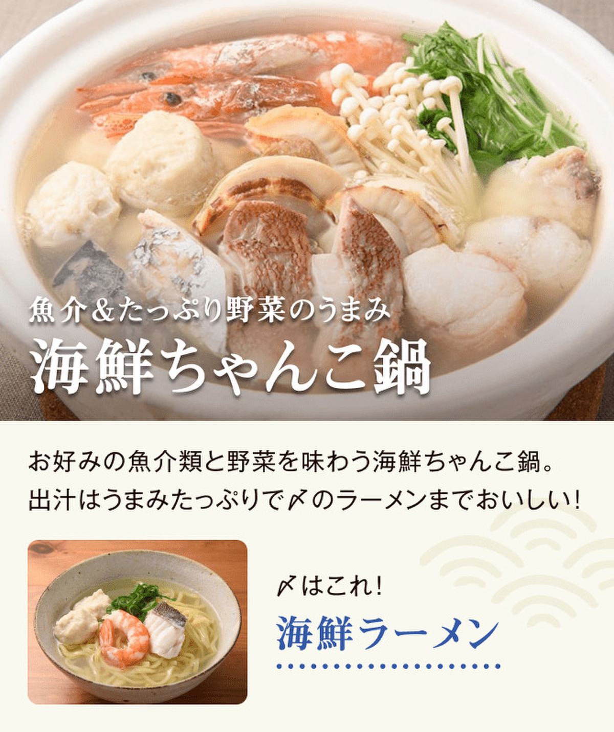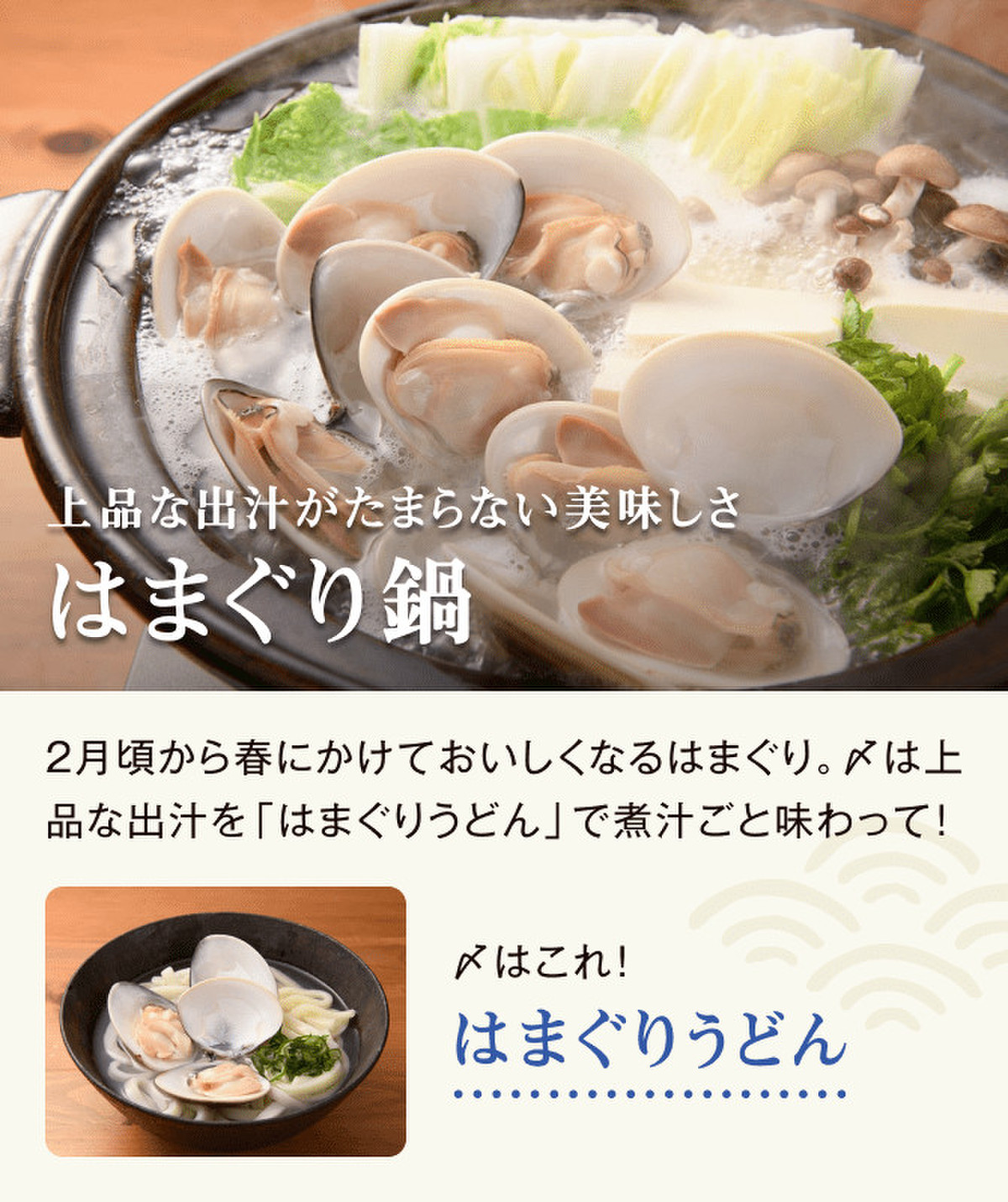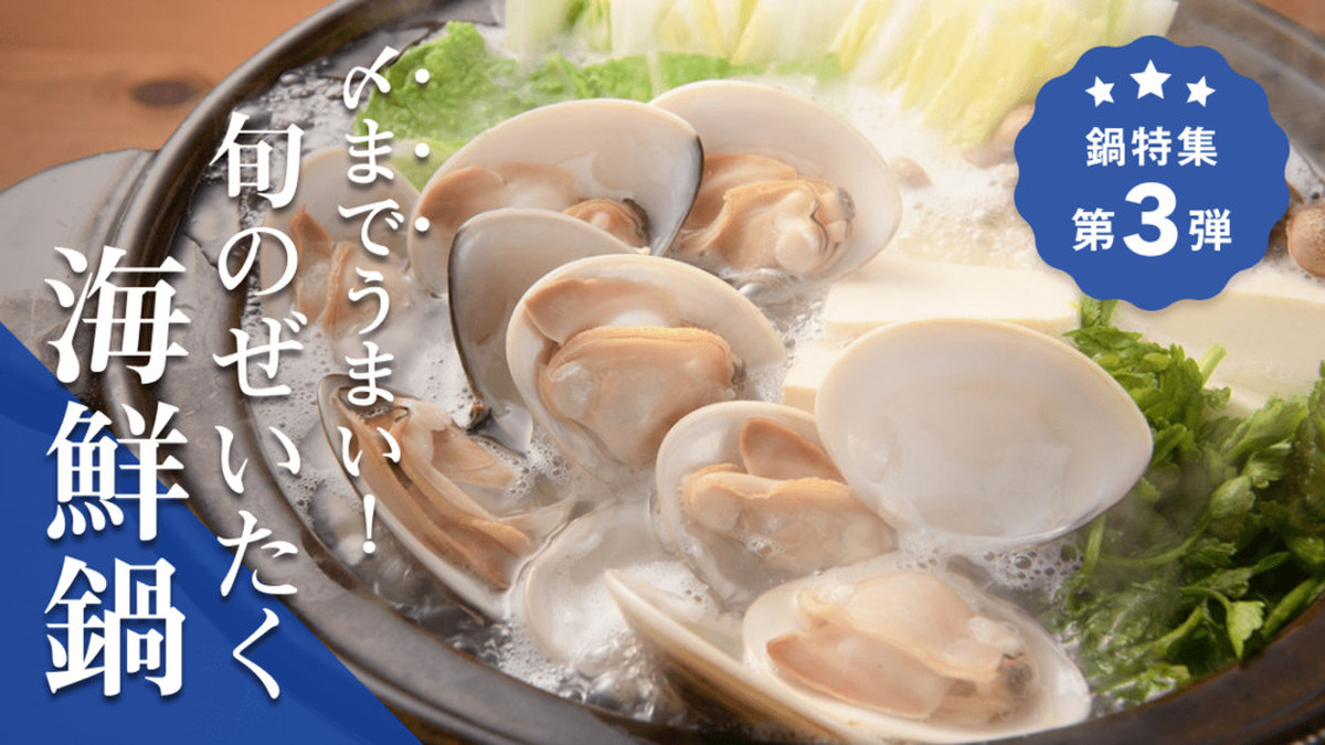 今の時季においしくなる海鮮を使って、〆まで美味しい鍋を楽しみませんか♪この時季ならではのお楽しみ、タラチリ鍋、はまぐり鍋、海鮮ちゃんこ鍋にぴったりな商品をピックアップ!