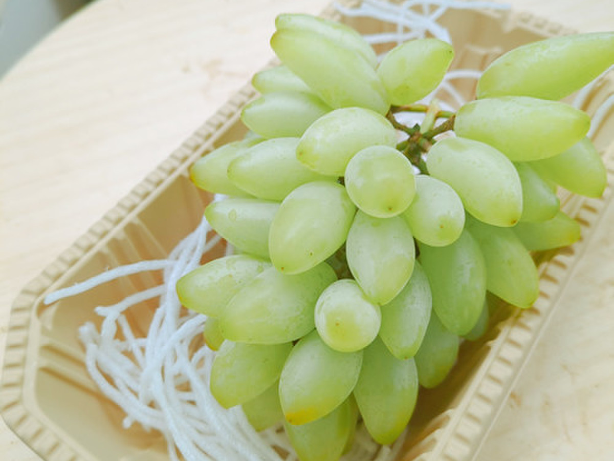 イタリアではピッテロ・ビアンコという品種として、古くからその周辺で親しまれてきました。 その果粒の形から「淑女の指」という意味の「レディースフィンガー」といいます。 果粒の大きさは多少のばらつきがありますが3~4.5cm程のサイズで1粒が約5gぐらいで、 色はマスカット色で皮は薄く、濃い甘さと程よい食感が見た目の美しさを際立てています。 手軽に食べられてしまうユニークなブドウです。
